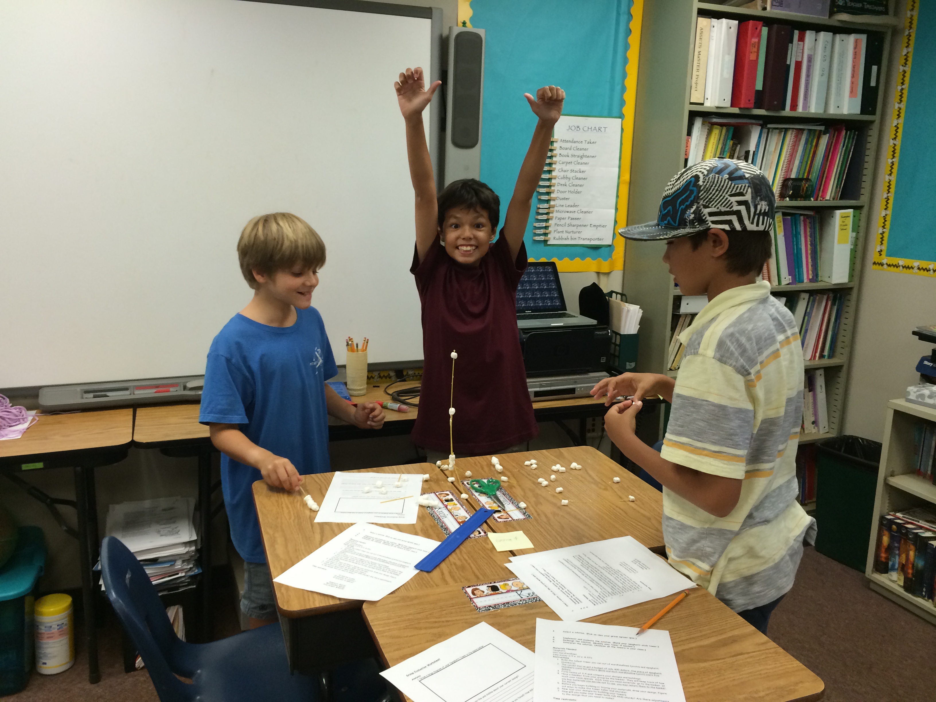 - Class 53 tackled the Spaghetti-Marshmallow Tower challenge, which focuses on collaboration and problem-solving. Students were in small groups and instructed to build the highest tower they could with only uncooked spaghetti noodles and marshmallows. Ms. Matsumoto and Ms. Nguepdjo added a wrinkle though. Each group had to operate within a $400 budget, with each noodle costing $10 and each marshmallow costing $5. It was fun to watch the groups work together to strategize their designs and cost allocations.