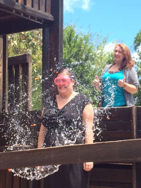 - Also on Day One, Class 74 conducted its first science experiment of the year. The lesson was to review the basics of the scientific method, data collection, and the concept of force. Students gathered out on our back play structure and dropped water balloons of different weights to see which ones would break. This experiment had a twist though, as Mrs. Lincoln agreed to be stand under the balloons! As you can imagine, this was a popular decision for students.