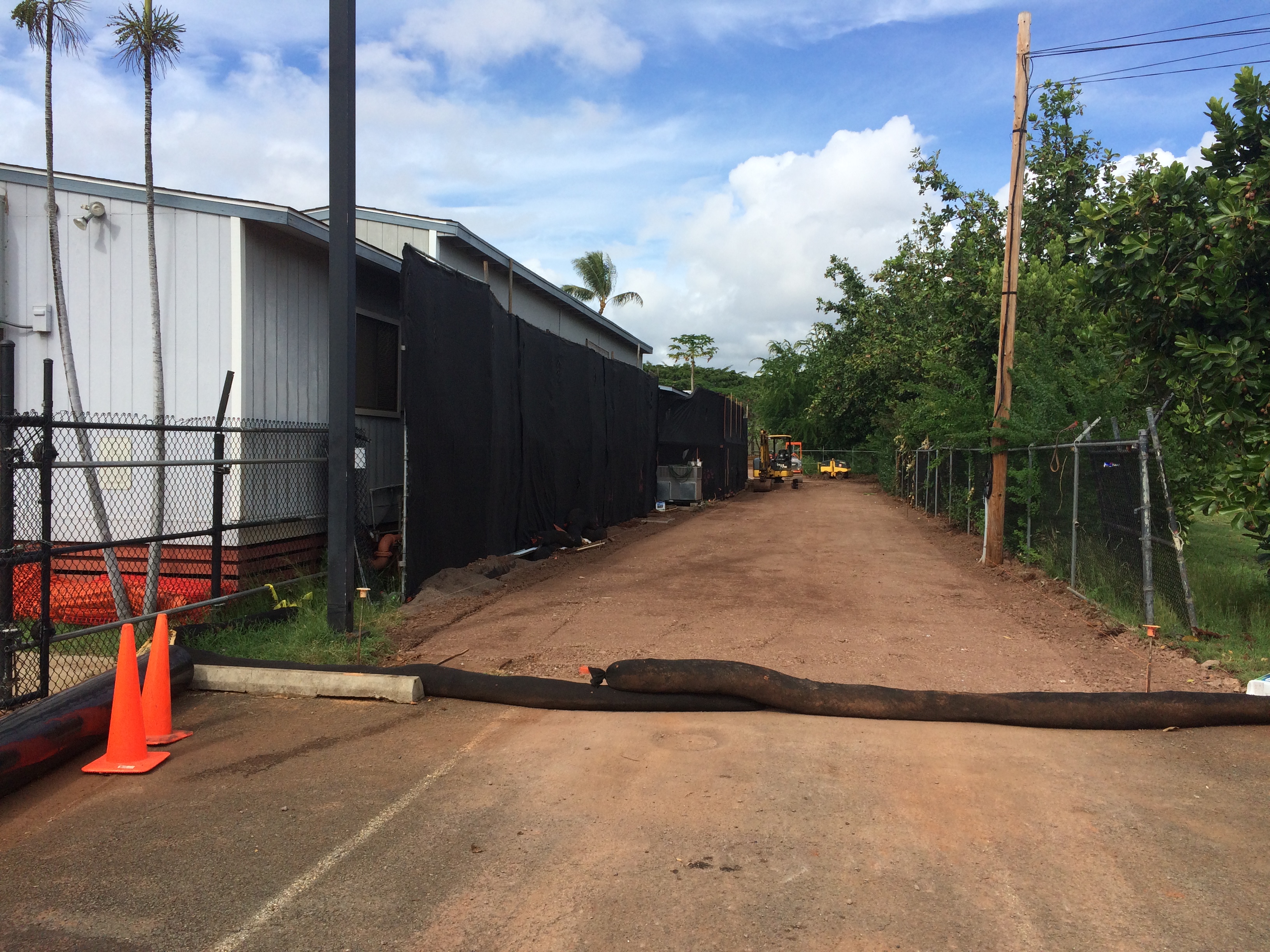 We have installed a 12-foot high dust fence around the perimeter of the school to catch any residual dirt and dust. This has worked well. We have also put a combination lock on the gate leading out to the backfield so no one wanders or impulsively runs onto an active construction site.